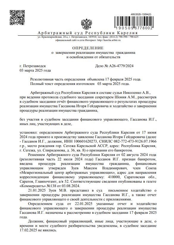 Завершение процедуры реализации имущества Мингазовой Раушании Рафаиловны.